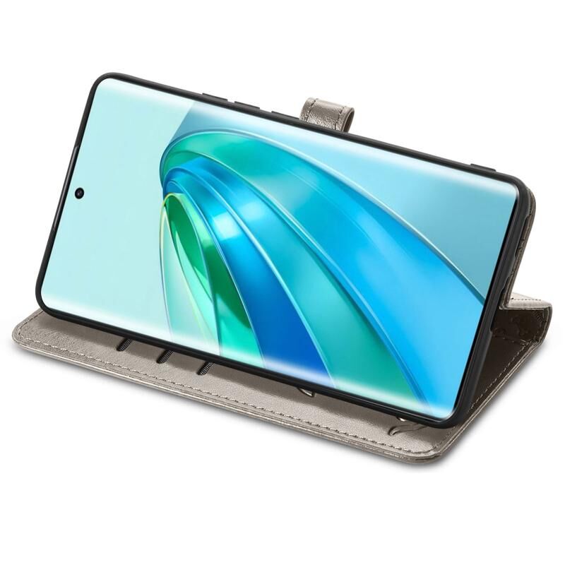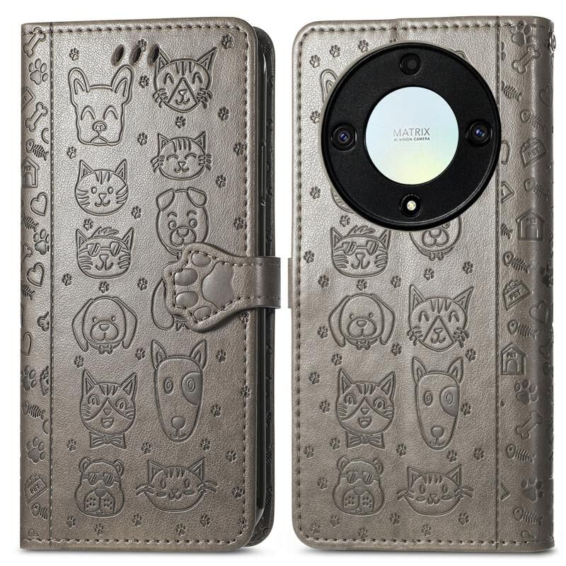 Θήκη τηλεφώνου από δέρμα με ανάγλυφα σχέδια χαριτωμένων γάτας και σκύλου για Honor Magic5 Lite (Μωβ)