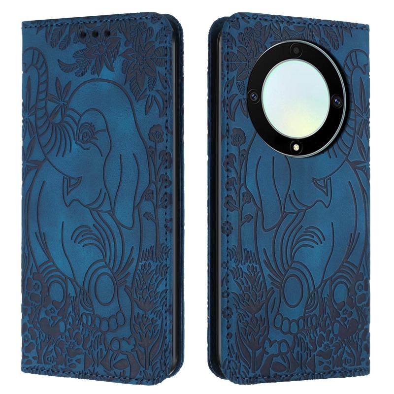 For Honor Magic5 Lite Retro Elephant Embossed Leather Phone Case(Blue)