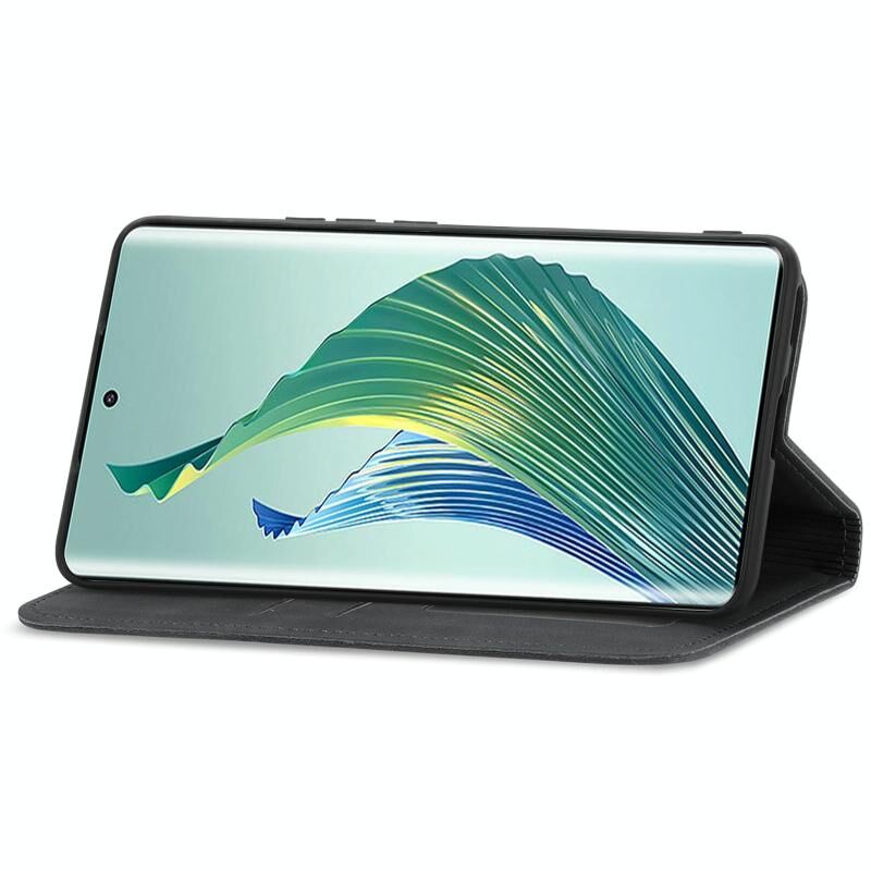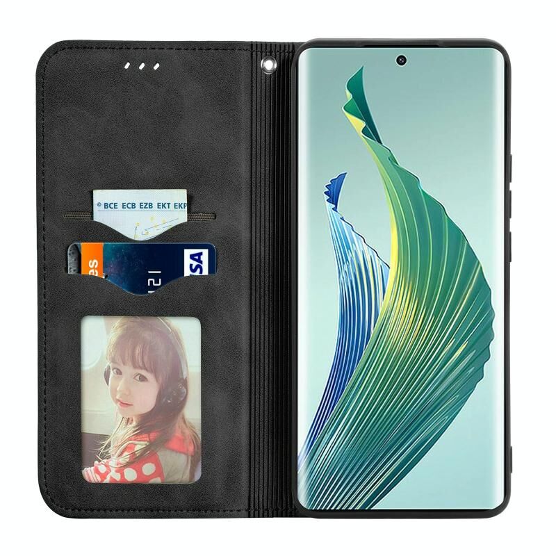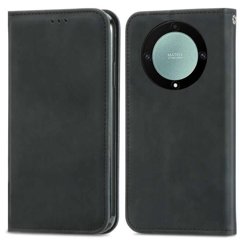 Για Honor Magic5 Lite Ρετρό δέρμα αίσθηση μαγνητικό δέρμα τηλέφωνο υπόθεση (Μαύρο)