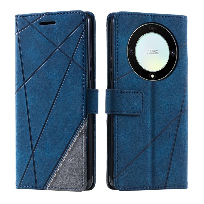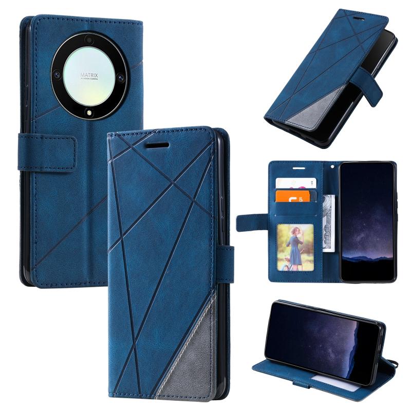For Honor Magic5 Lite Skin Feel Splicing Leather Phone Case(Blue)