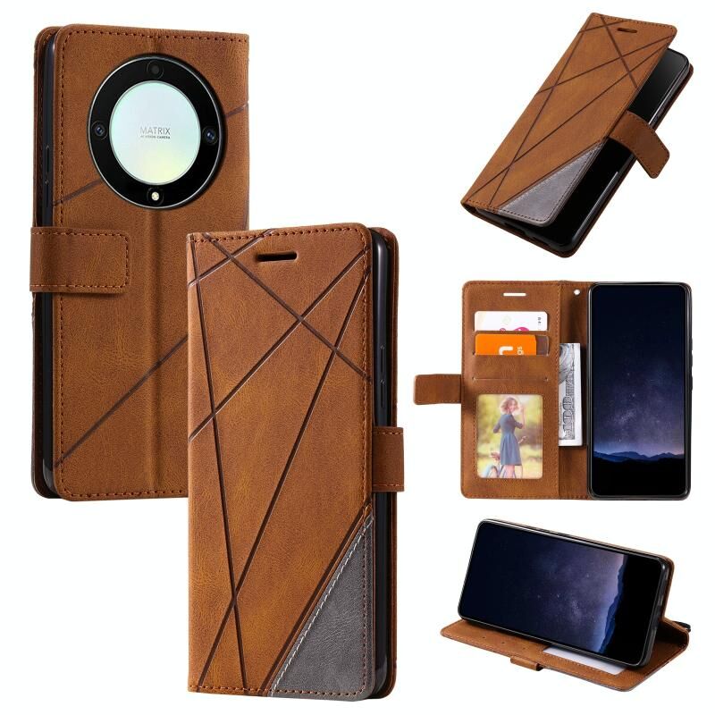 For Honor Magic5 Lite Skin Feel Splicing Leather Phone Case(Brown)