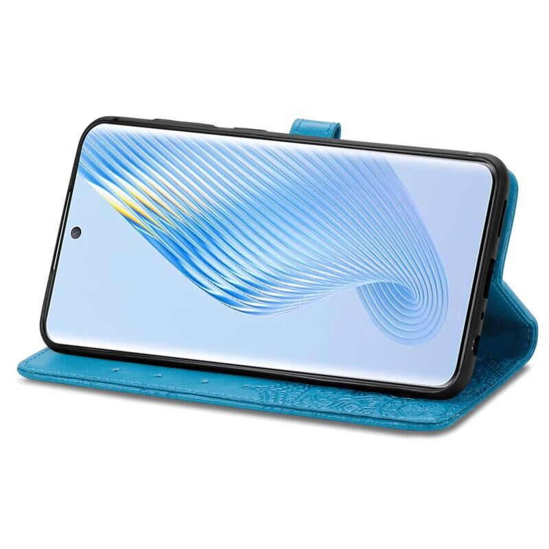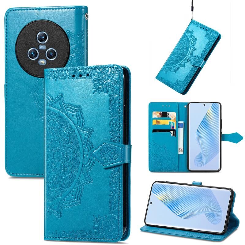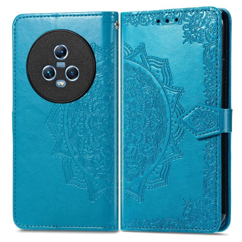 Για Honor Magic5 Mandala λουλούδι ανάγλυφο δερμάτινη θήκη τηλεφώνου (μπλε)