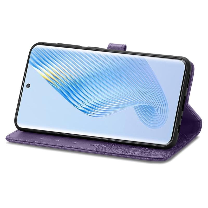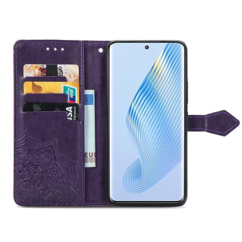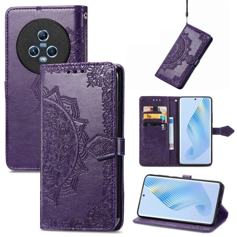 Για Honor Magic5 Mandala λουλούδι ανάγλυφο δερμάτινη θήκη τηλεφώνου (Μωβ)