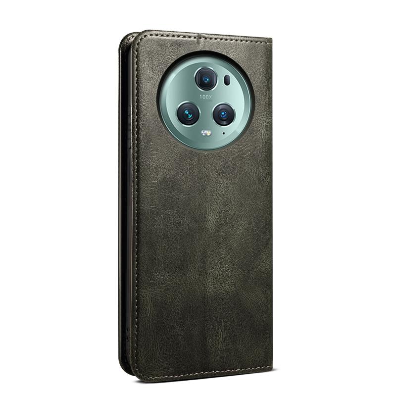 Θήκη τηλεφώνου από δέρμα με υφή λαδιού και κεριού Crazy Horse για Honor Magic5 (Μαύρο)