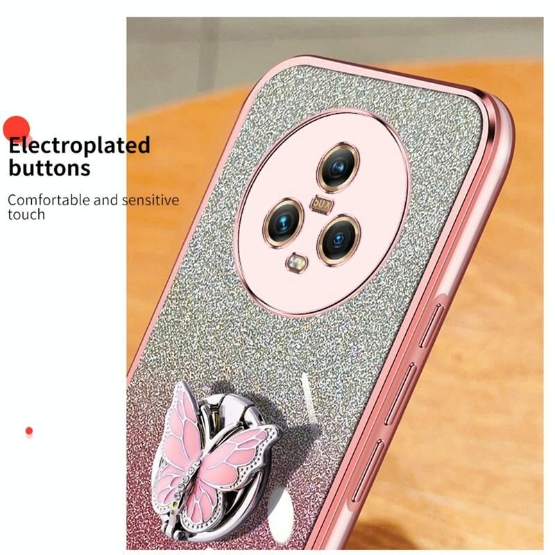 Θήκη κινητού τηλεφώνου TPU με σχέδιο πεταλούδας από γκλίτερ με διαβαθμισμένο χρώμα και επικάλυψη για Honor Magic5 (Ροζ)