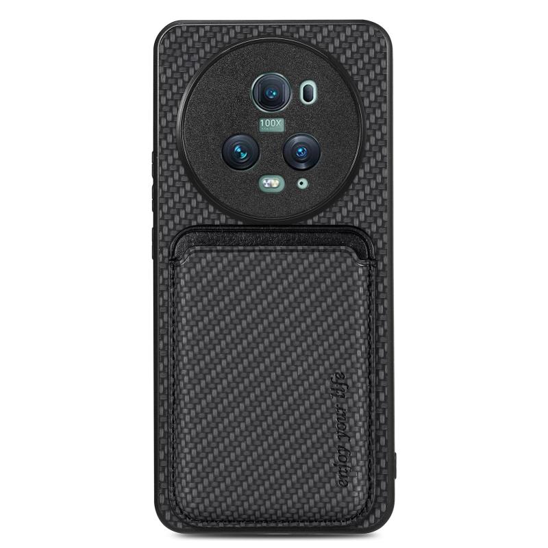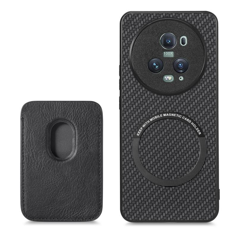For Honor Magic5 Pro Carbon Fiber Leather Card Magsafe Magnetic Phone Case(Black)