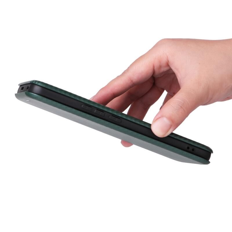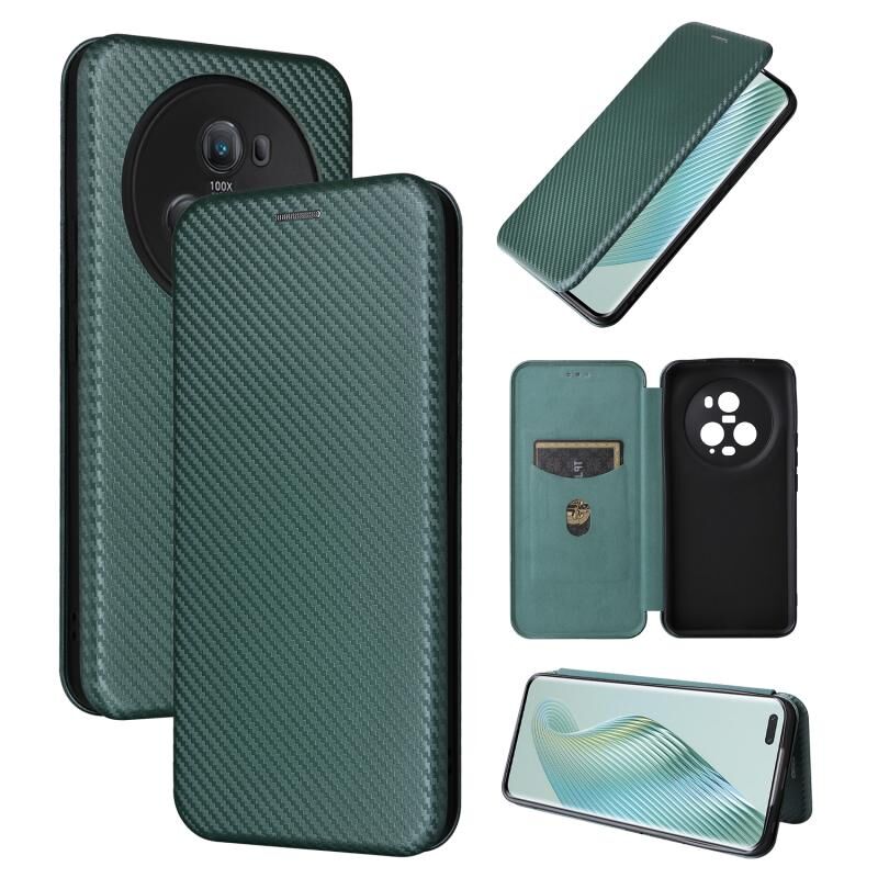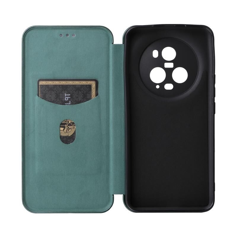 Θήκη τηλεφώνου δερμάτινη, αναδιπλούμενη, με υφή ανθρακονημάτων για Honor Magic5 Pro (πράσινο)