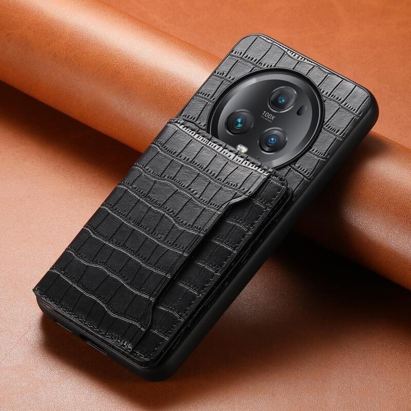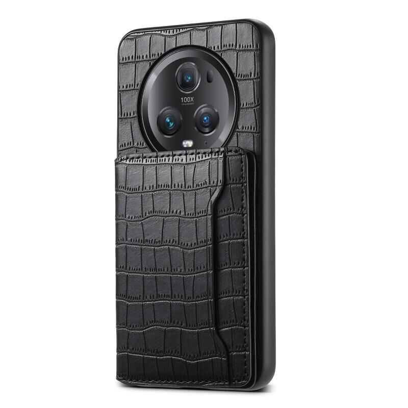 Θήκη κινητού τηλεφώνου For Honor Magic5 Pro με υφή κροκόδειλου και σχέδιο τσάντας κάρτας, πλήρης κάλυψη (Μαύρο)
