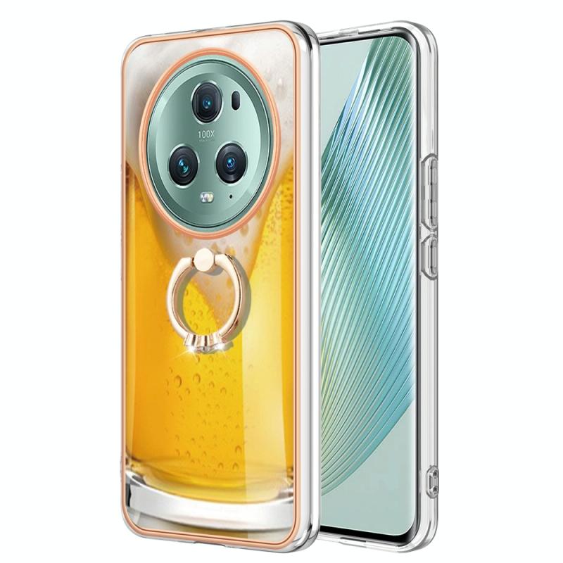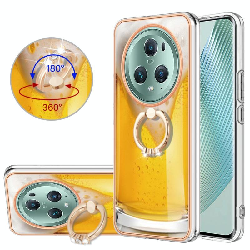 For Honor Magic5 Pro Electroplating Dual-side IMD Phone Case with Ring Holder(Draft Beer)