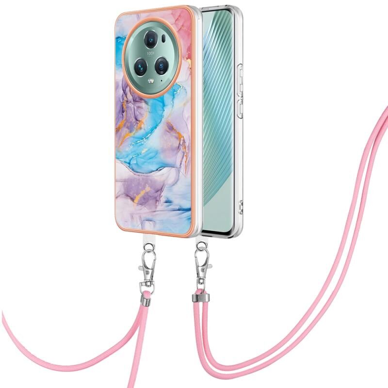 Θήκη κινητού τηλεφώνου For Honor Magic5 Pro με επιμετάλλωση IMD TPU με κορδόνι (Ροζ Λέπια)