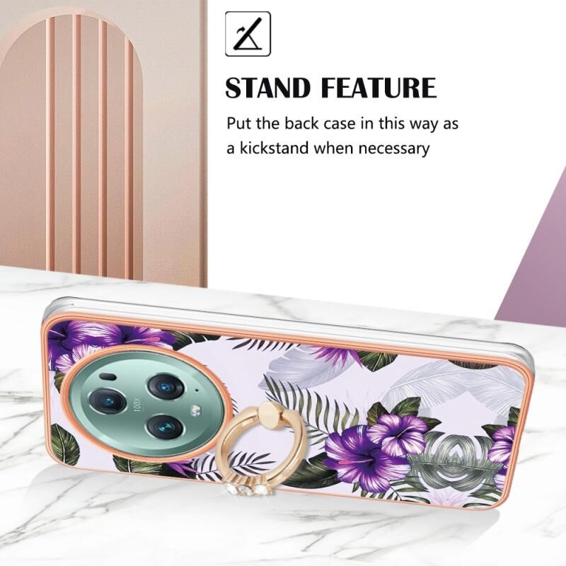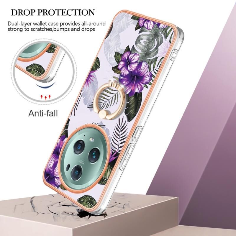 Θήκη κινητού τηλεφώνου For Honor Magic5 Pro με Ηλεκτρολυτική Επικάλυψη IMD TPU με Δαχτυλίδι (Μωβ Λουλούδι)