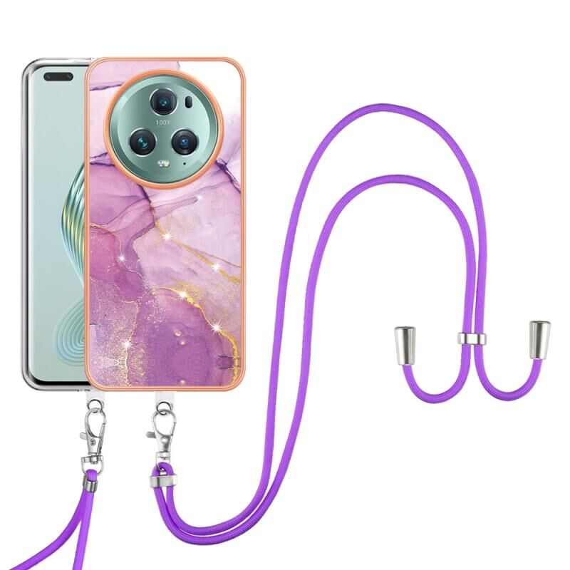 Θήκη τηλεφώνου για Honor Magic5 Pro με ηλεκτρολυτική μαρμάρινη όψη, διπλής όψης IMD με κορδόνι (Μωβ 001)