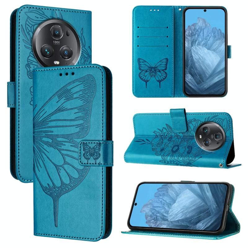 Για Honor Magic5 Pro ανάγλυφη πεταλούδα δερμάτινη θήκη τηλεφώνου (μπλε)