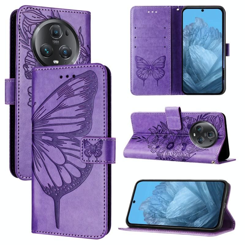 Για Honor Magic5 Pro ανάγλυφη πεταλούδα δερμάτινη θήκη τηλεφώνου (μωβ)