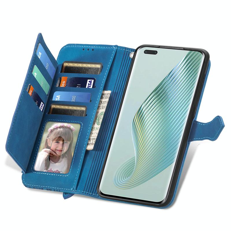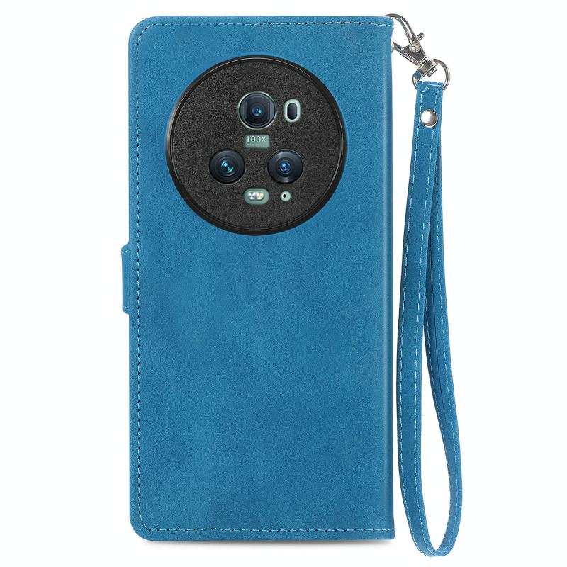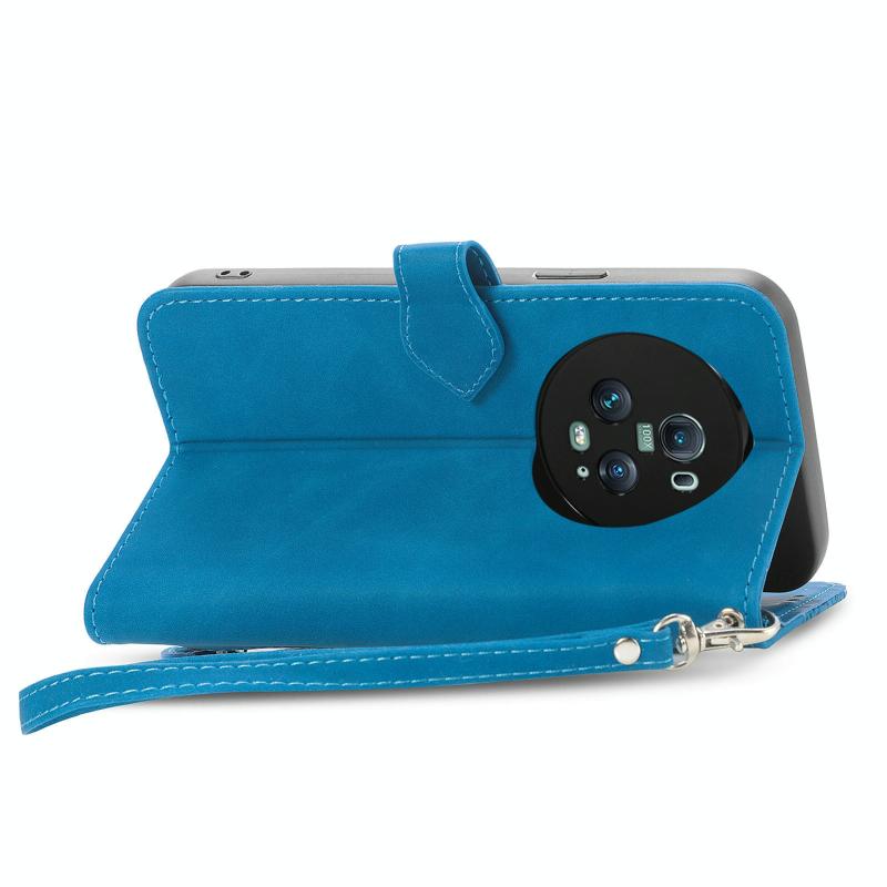 Θήκη τηλεφώνου από δέρμα με ανάγλυφο λουλούδι και φερμουάρ για Honor Magic5 Pro (Μπλε)
