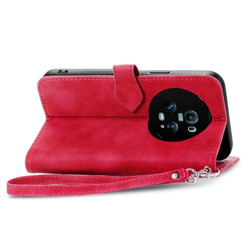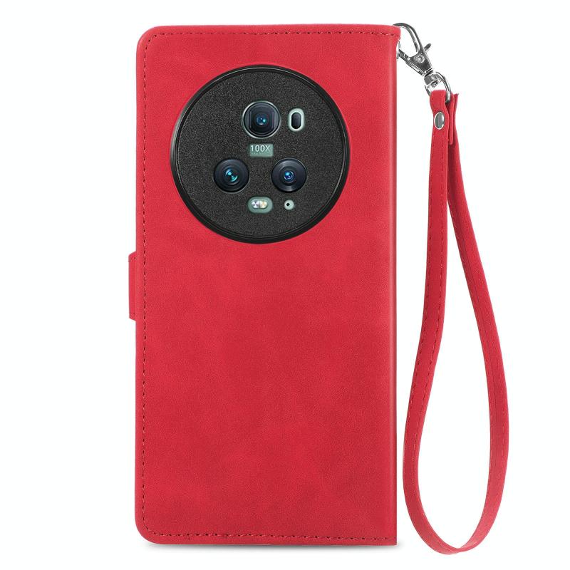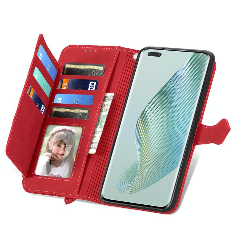 Θήκη τηλεφώνου από δέρμα με ανάγλυφο λουλούδι και φερμουάρ για Honor Magic5 Pro (Κόκκινο)