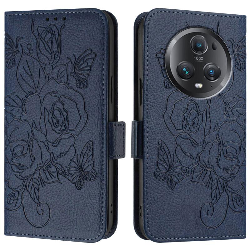 For Honor Magic5 Pro Embossed Rose RFID Anti-theft Leather Phone Case(Dark Blue)