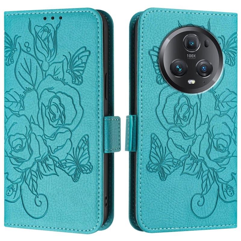 For Honor Magic5 Pro Embossed Rose RFID Anti-theft Leather Phone Case(Light Blue)