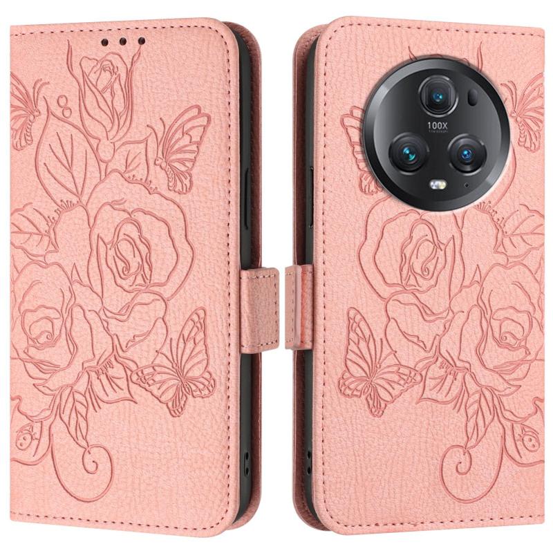 For Honor Magic5 Pro Embossed Rose RFID Anti-theft Leather Phone Case(Pink)