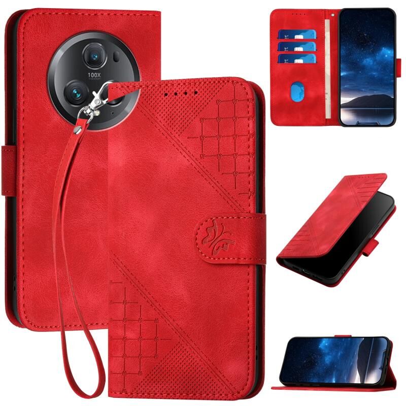 Θήκη τηλεφώνου από δέρμα με ανάγλυφο σχέδιο "Grid Butterfly" για Honor Magic5 Pro με κορδόνι (Σκούρο Μπλε)