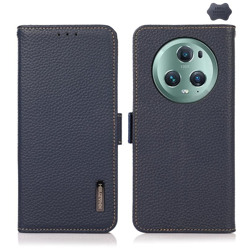 Θήκη τηλεφώνου Honor Magic5 Pro KHAZNEH με μαγνητική σύνδεση, γνήσιο δέρμα Litchi, RFID (Μαύρο)