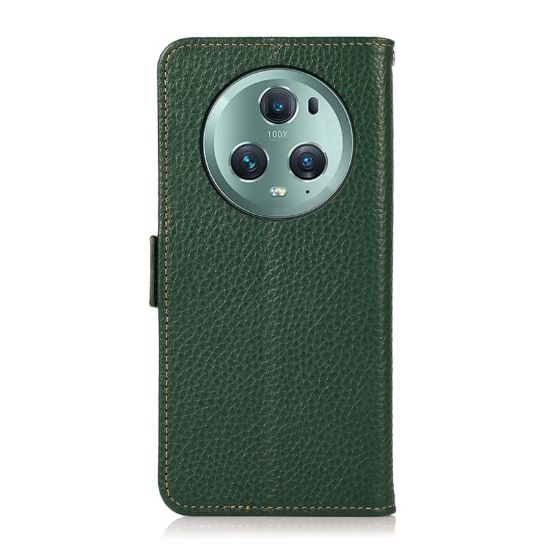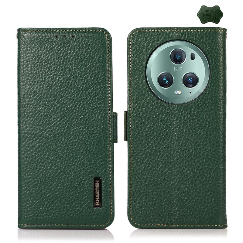 For Honor Magic5 Pro KHAZNEH Side-Magnetic Litchi Genuine Leather RFID Phone Case(Green)