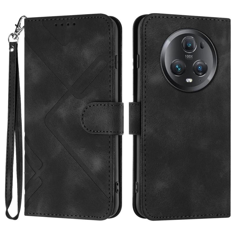 Θήκη τηλεφώνου Honor Magic5 Pro, Γραμμή Σχεδίου, Δερμάτινη Υφή (Μαύρο)
