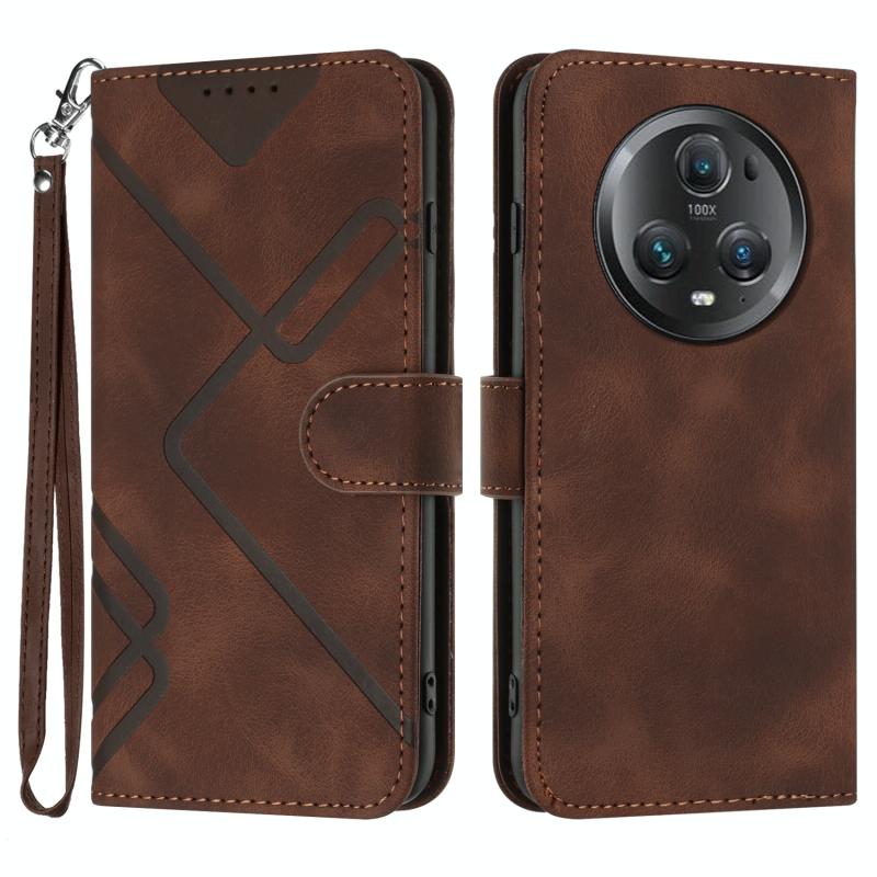 Θήκη τηλεφώνου Honor Magic5 Pro, Γραμμή Σχεδίου, Δερμάτινη Υφή (Καφέ)