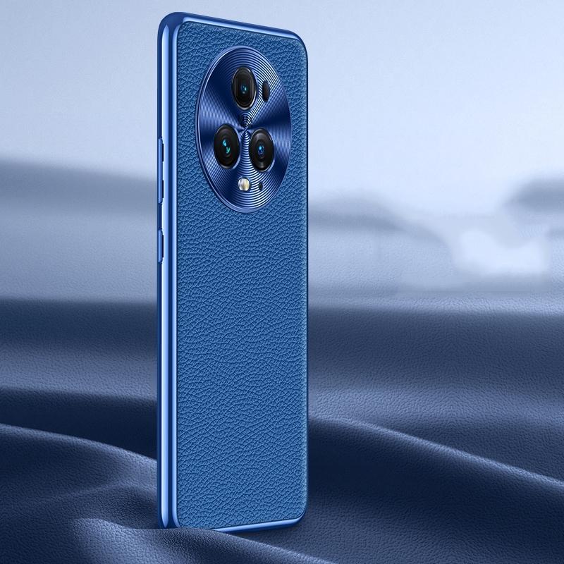 Θήκη κινητού τηλεφώνου Honor Magic5 Pro από γνήσιο δέρμα με υφή Litchi (Πορτοκαλί)