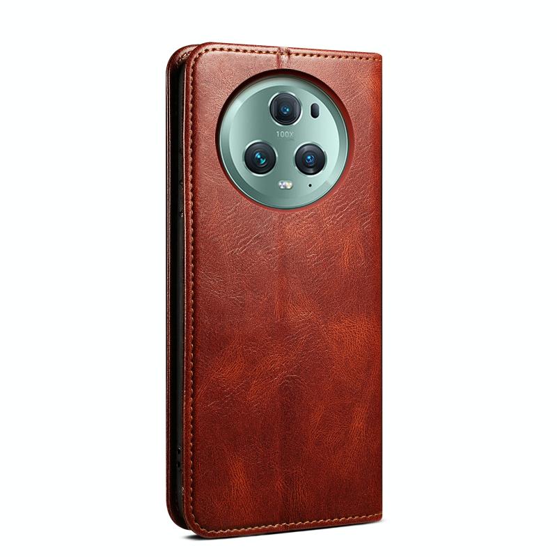 Θήκη τηλεφώνου από δέρμα με υφή λαδιού και κεριού Crazy Horse για Honor Magic5 Pro (Καφέ)