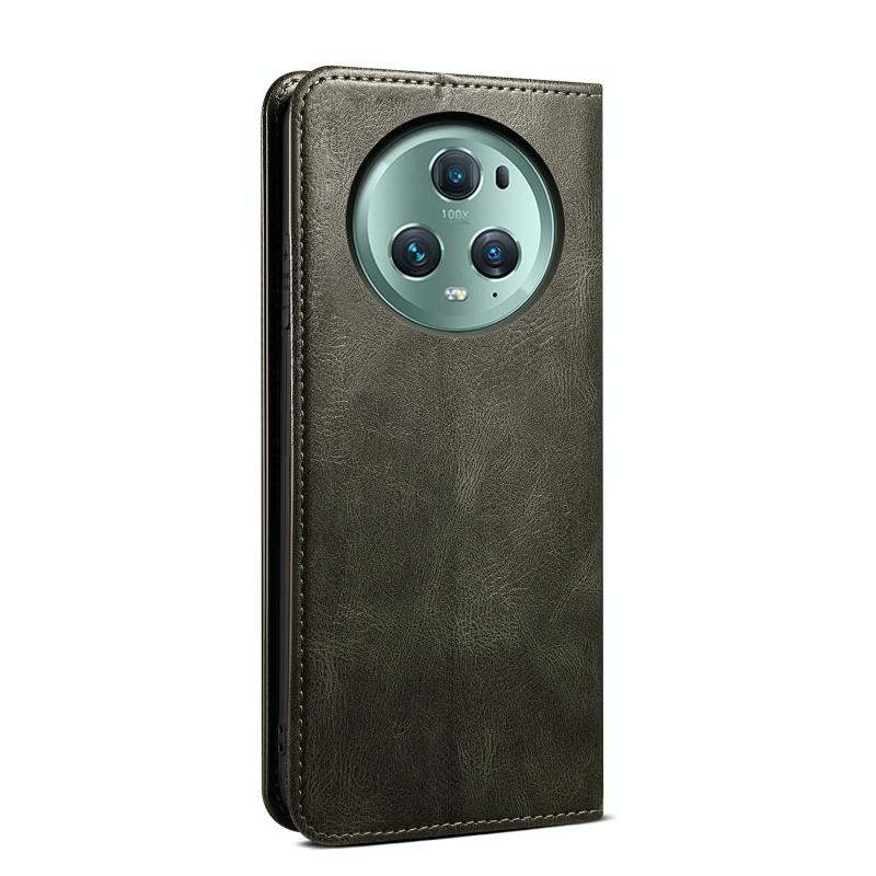 Θήκη τηλεφώνου από δέρμα με υφή λαδιού και κεριού Crazy Horse για Honor Magic5 Pro (Μαύρο)