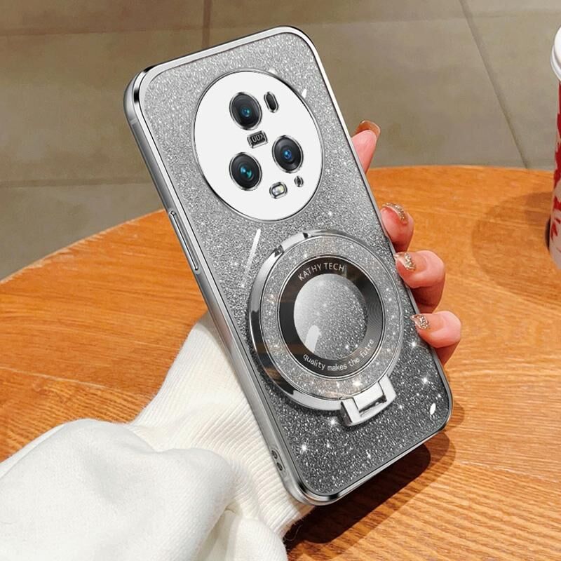 Για Honor Magic5 Pro επιμεταλλωμένο βαθμιδωτή Glitter στρογγυλή κάτοχος TPU τηλέφωνο υπόθεση (ασημί)
