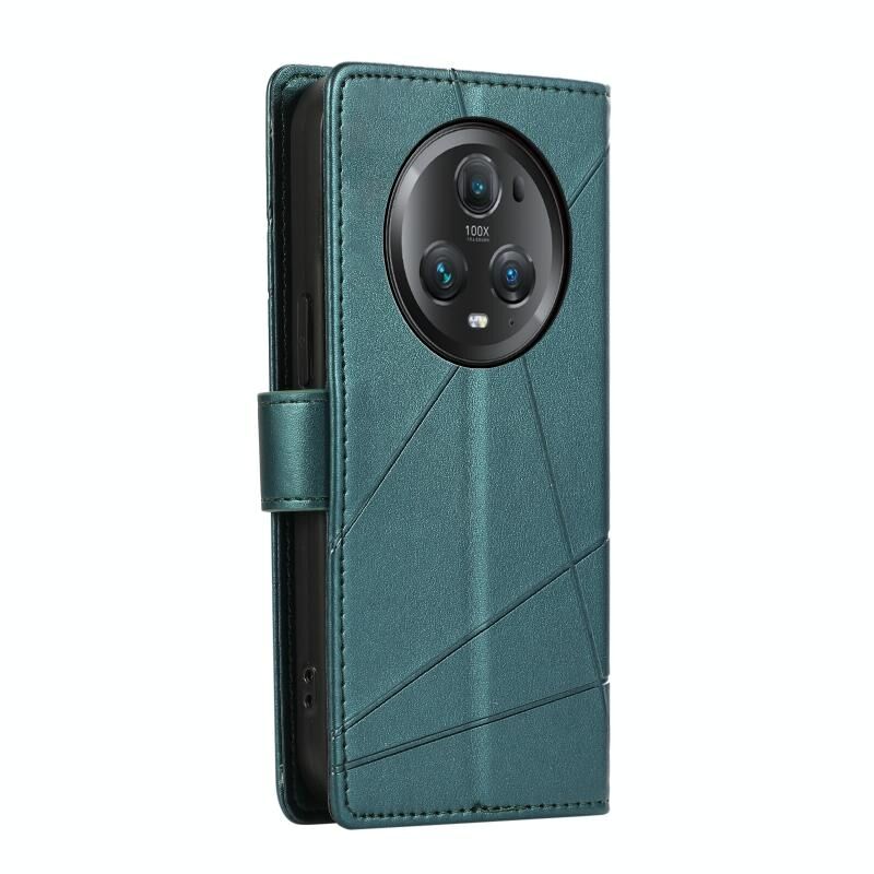Θήκη τηλεφώνου For Honor Magic5 Pro από γνήσιο δέρμα PU με ανάγλυφη υφή και λεπτομέρειες (Μπλε)