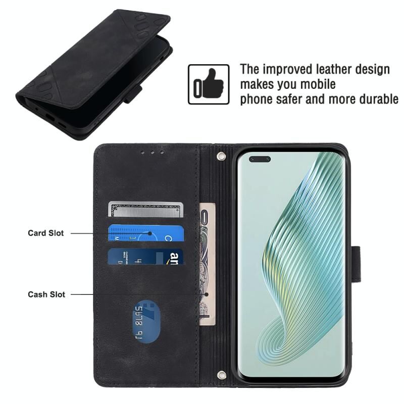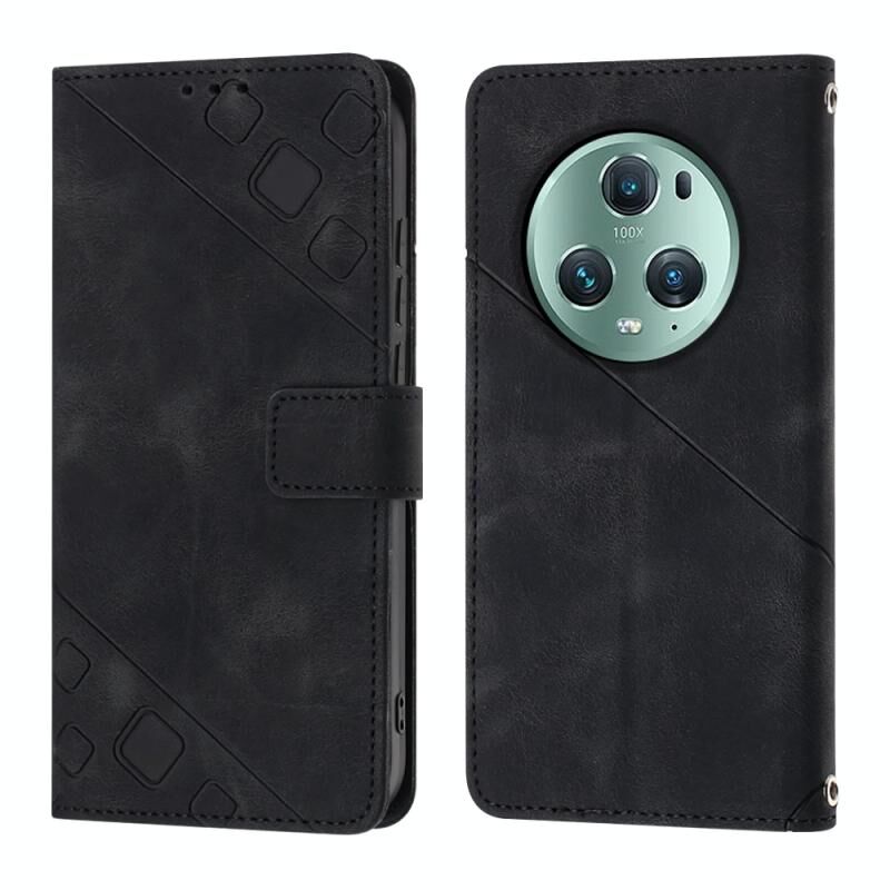 Για Honor Magic5 Pro Skin-feel ανάγλυφη δερμάτινη θήκη τηλεφώνου (Μαύρο)