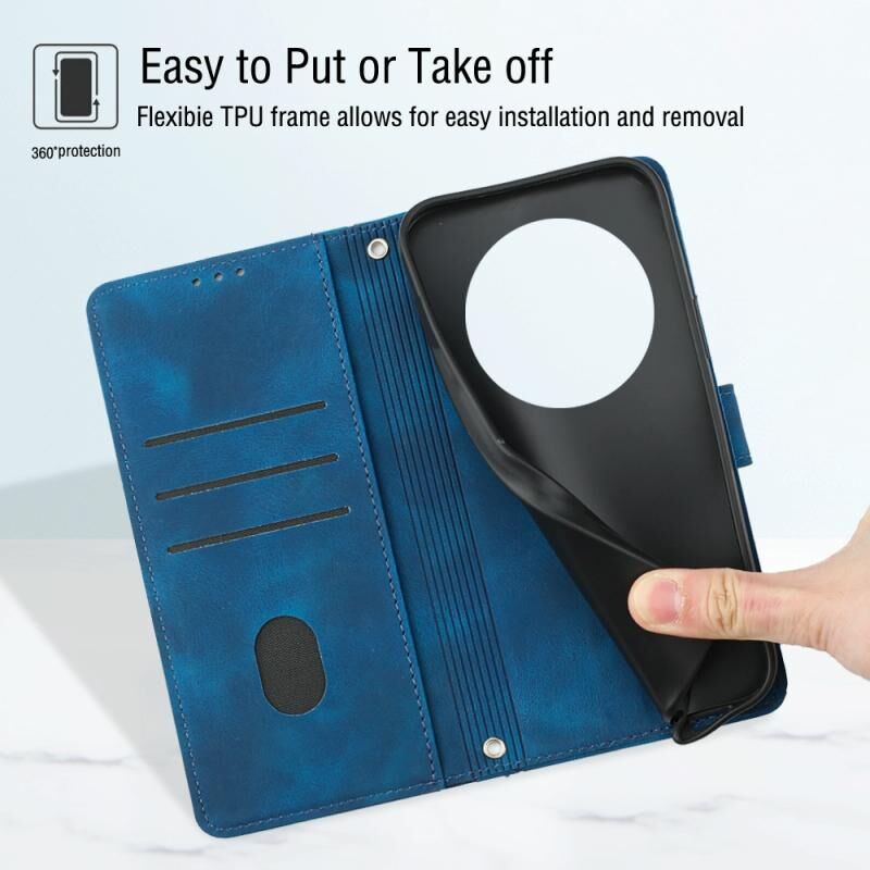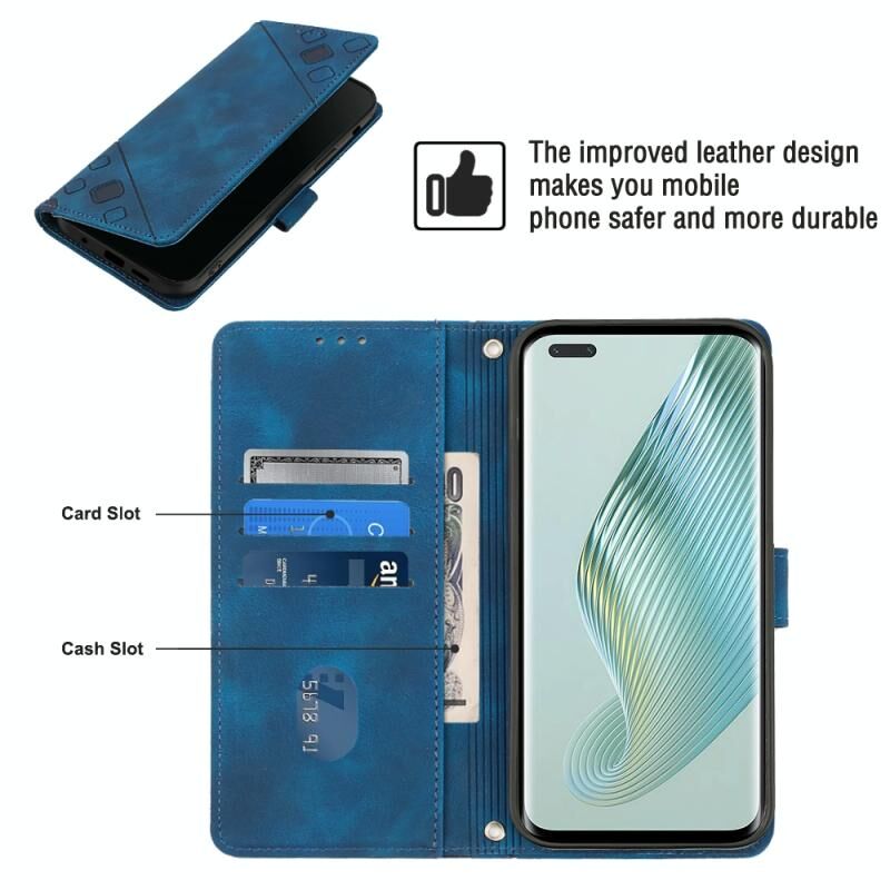 Για Honor Magic5 Pro Skin-feel ανάγλυφη δερμάτινη θήκη τηλεφώνου (Μπλε)