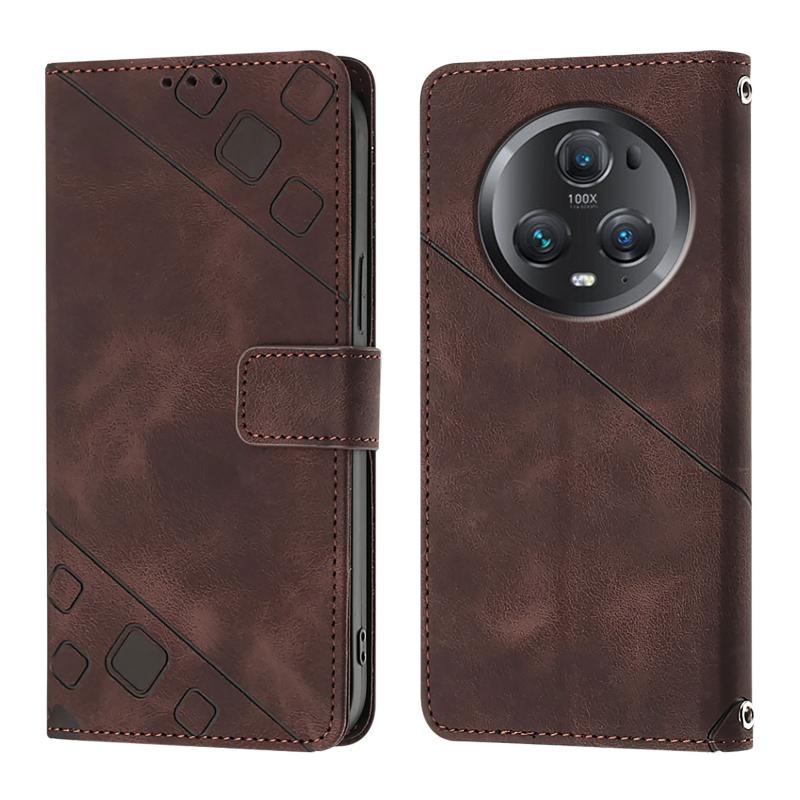 For Honor Magic5 Pro Skin-feel Embossed Leather Phone Case(Brown)