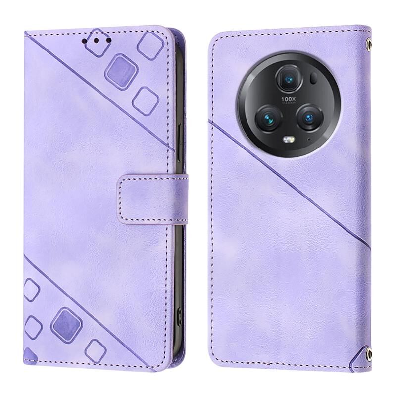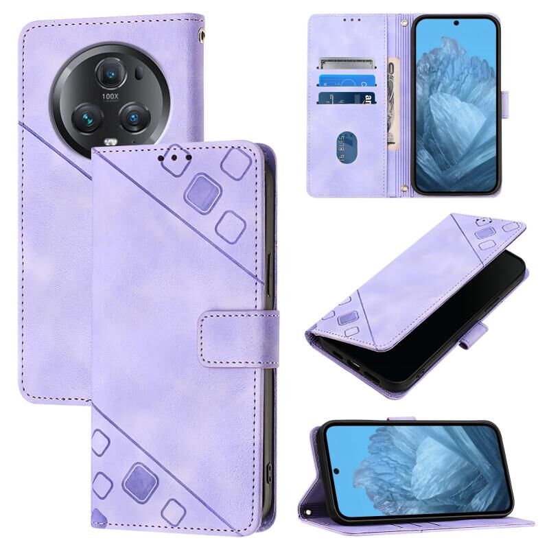 Θήκη κινητού τηλεφώνου Honor Magic5 Pro με υφή δέρματος και ανάγλυφο σχέδιο (Ανοιχτό Μωβ)