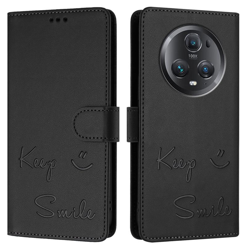For Honor Magic5 Pro Smile Embossing RFID Leather Phone Case(Black)