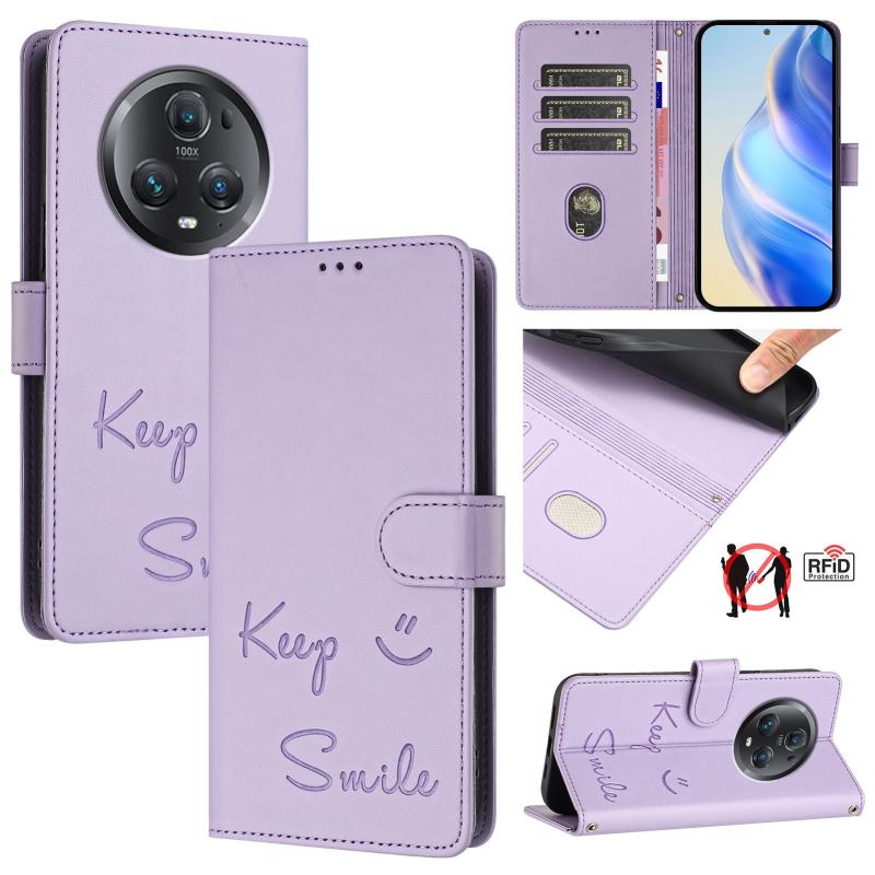 For Honor Magic5 Pro Smile Embossing RFID Leather Phone Case(Light Purple)