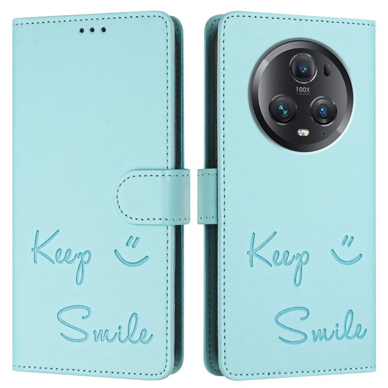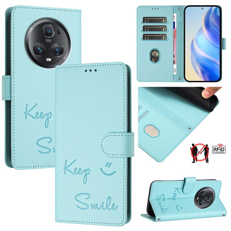 For Honor Magic5 Pro Smile Embossing RFID Leather Phone Case(Mint Green)