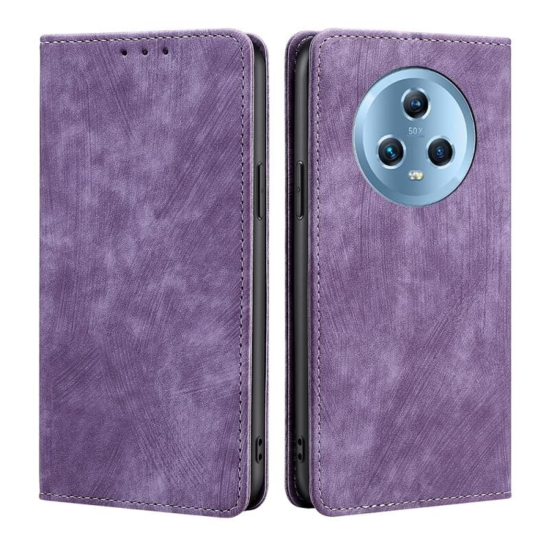 Για Honor Magic5 RFID Anti-theft βούρτσα μαγνητική υπόθεση τηλεφώνου δερμάτινη (Μωβ)