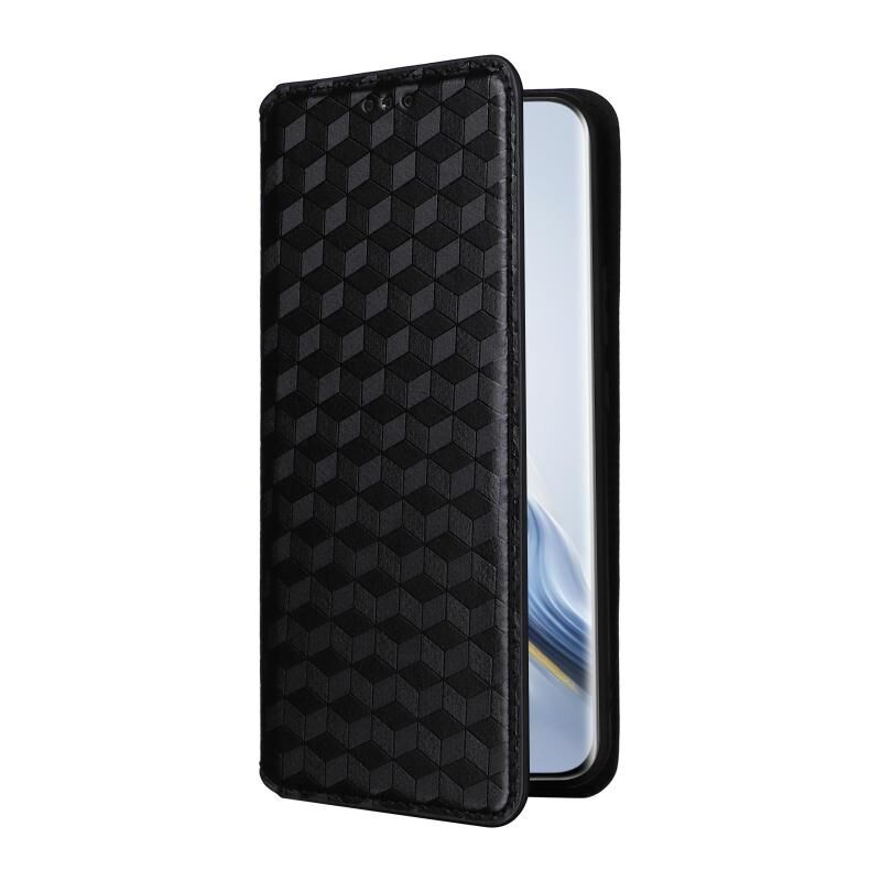 Θήκη τηλεφώνου δερμάτινη αναδιπλούμενη με υφή κυβικού πλέγματος για Honor Magic6 5G (Μαύρο)