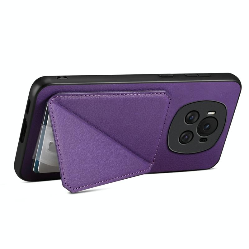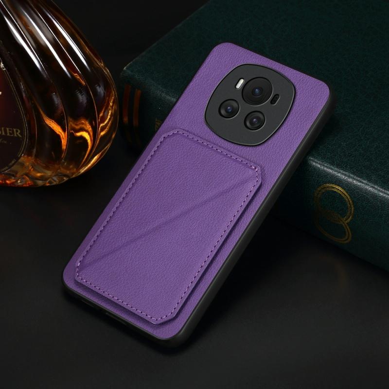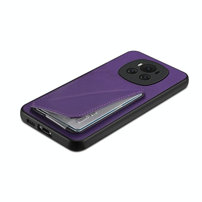 For Honor Magic6 5G D04 Calf Texture Dual Card Slot Holder Phone Case(Purple)
