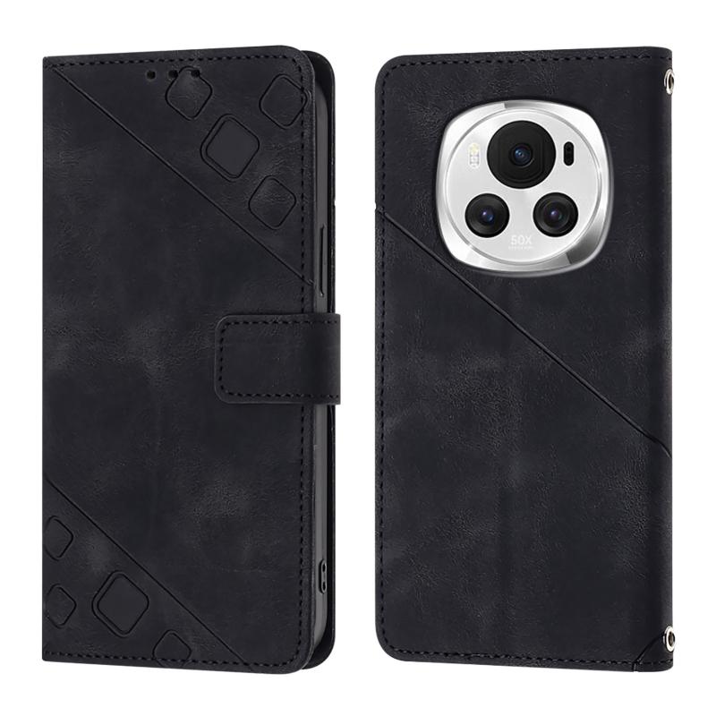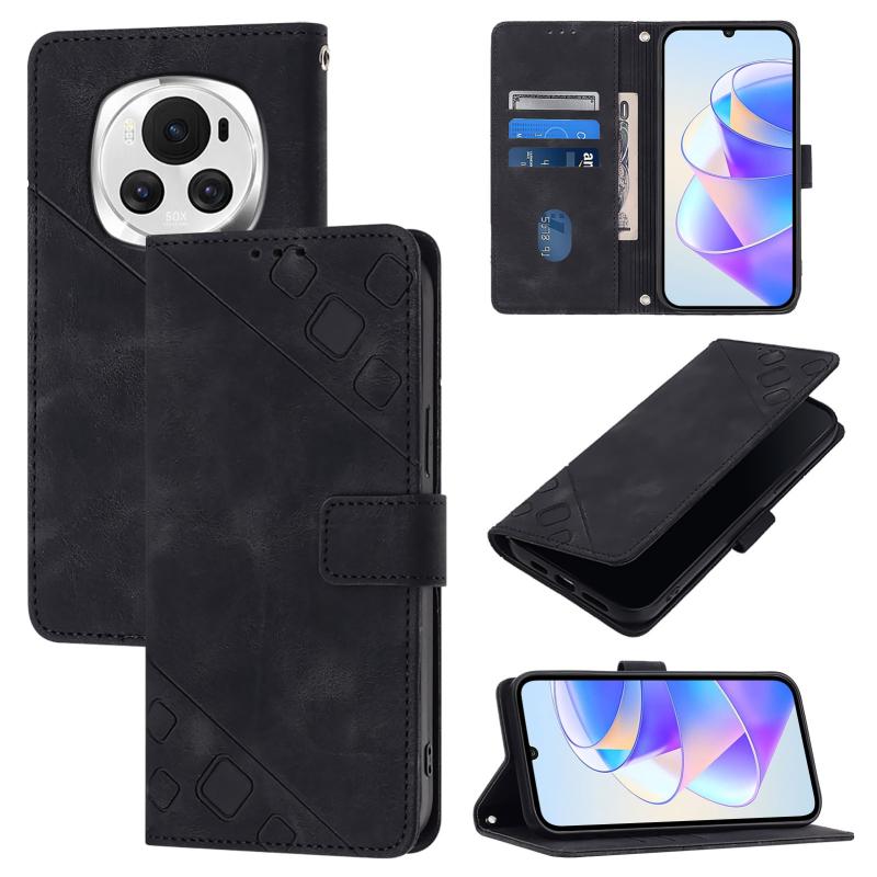 For Honor Magic6 5G Global Skin-feel Embossed Leather Phone Case(Black)