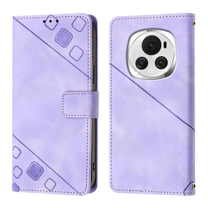 Θήκη τηλεφώνου από δέρμα με ανάγλυφη υφή για Honor Magic6 5G (ανοιχτό μωβ)