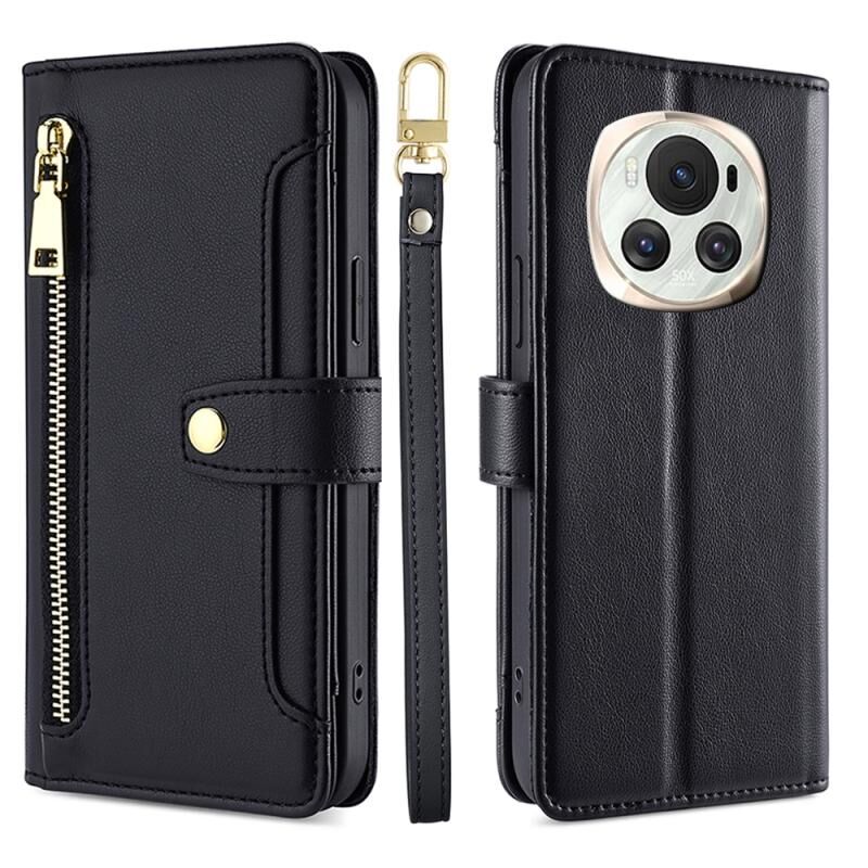 Για Honor Magic6 5G Πρόβατα Υφή Cross-body φερμουάρ πορτοφόλι δερμάτινη θήκη τηλεφώνου (μαύρο)