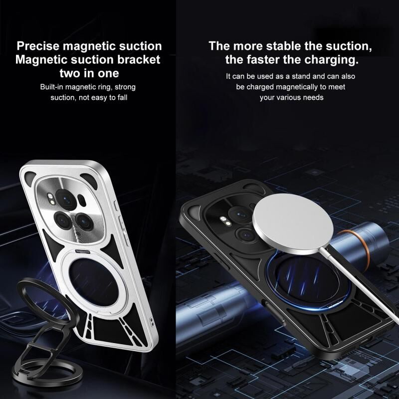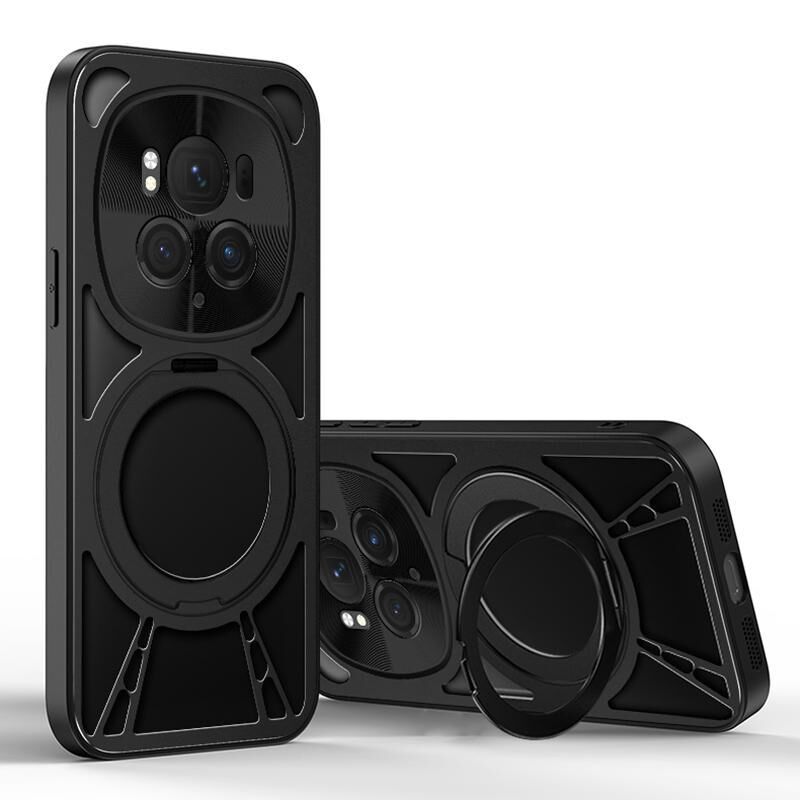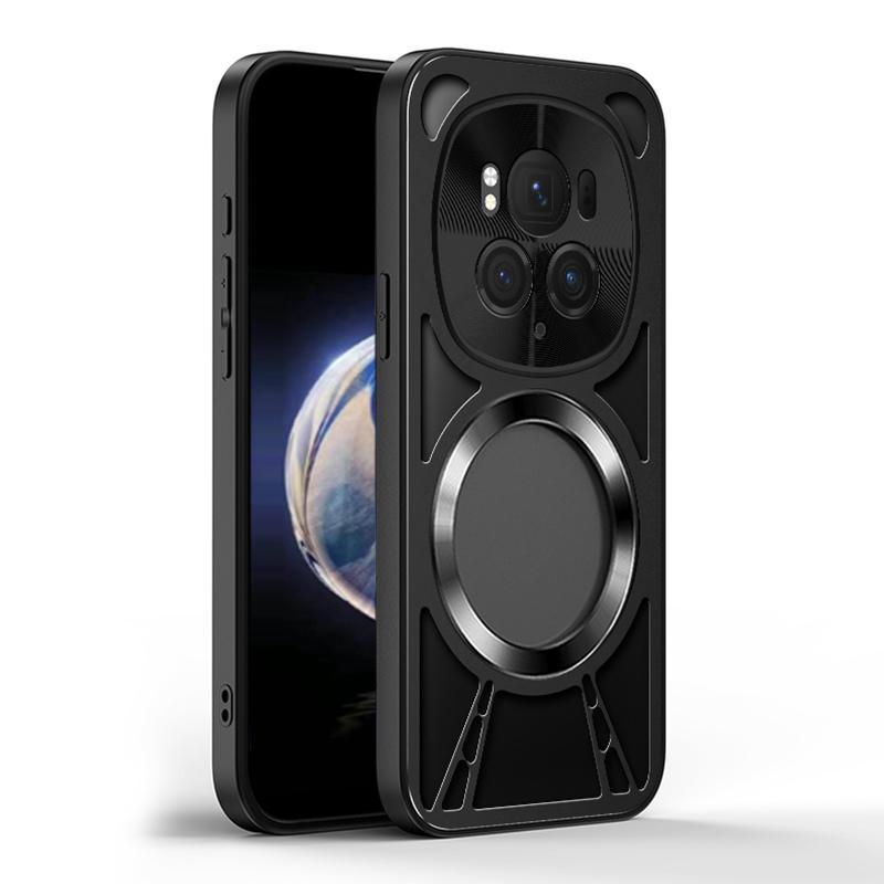For Honor Magic6 Cooling Hollow Metal Holder MagSafe Phone Case(Black)
