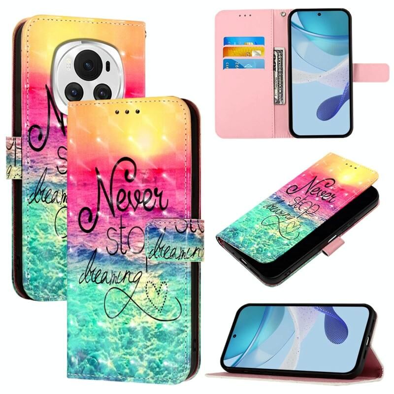 Θήκη τηλεφώνου από δέρμα με οριζόντια αναδίπλωση και τρισδιάστατη ζωγραφική για Honor Magic6 Global (Κυνηγώντας Όνειρα)