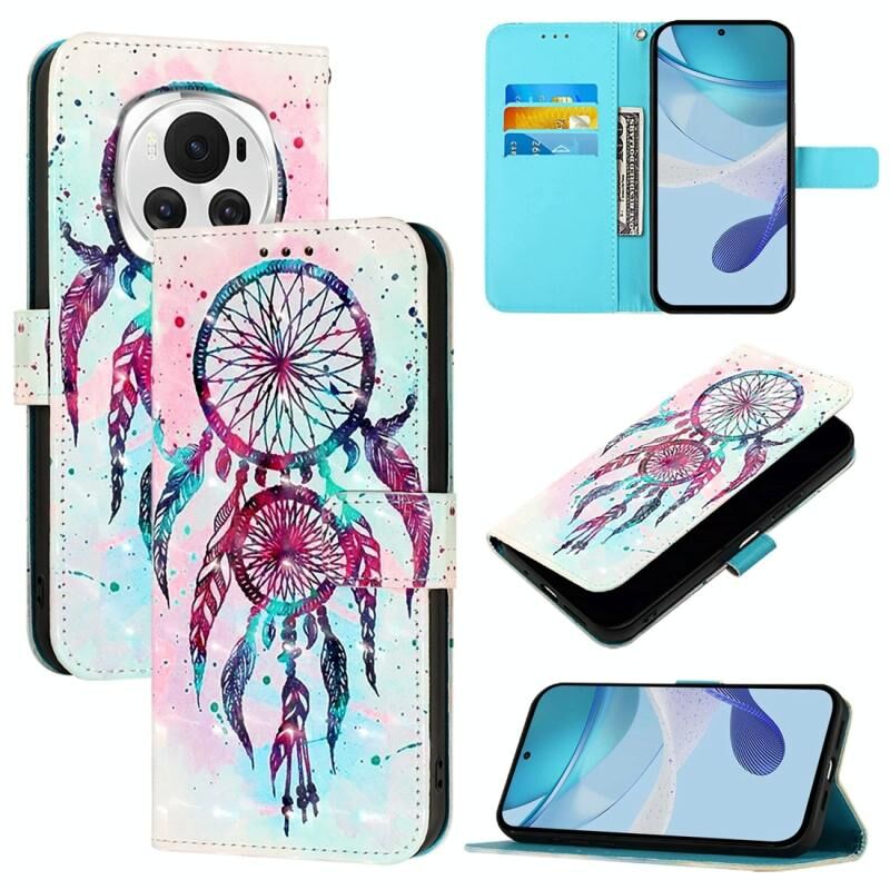 Θήκη τηλεφώνου από δέρμα με οριζόντιο άνοιγμα και τρισδιάστατη ζωγραφική για Honor Magic6 Global (Χρώμα: Αέριες καμπάνες)