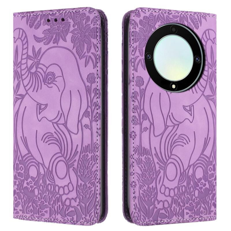 For Honor Magic6 Lite Retro Elephant Embossed Leather Phone Case(Purple)